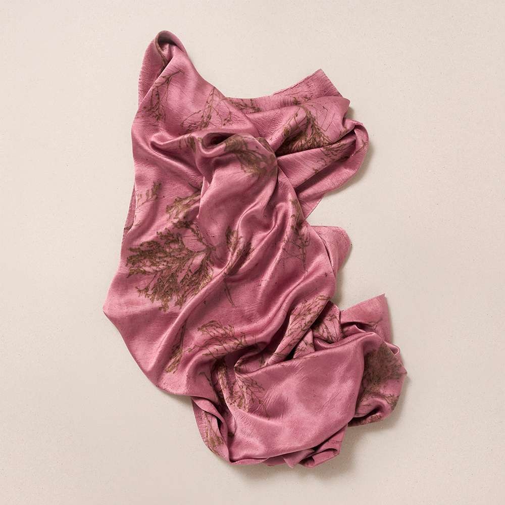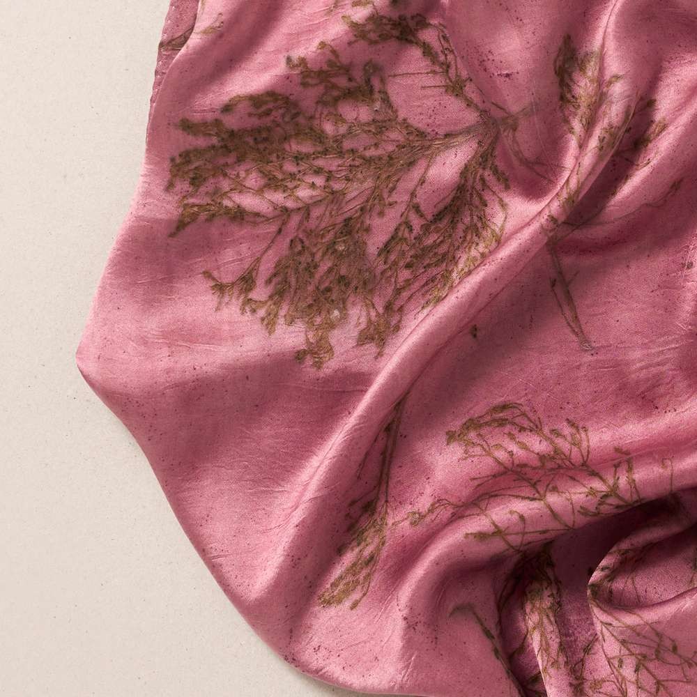 Dark hemp branches on a plum-toned background. Square silk scarf versatile to wear around the neck, over the shoulders or styled in the hair, a modern nod to the elegance of traditional greek women who draped scarves gracefully on their heads. Each 100% silk piece comes with a signed certificate of authenticity listing the natural dyes, techniques and materials used in its making. Uncover what’s within yours.