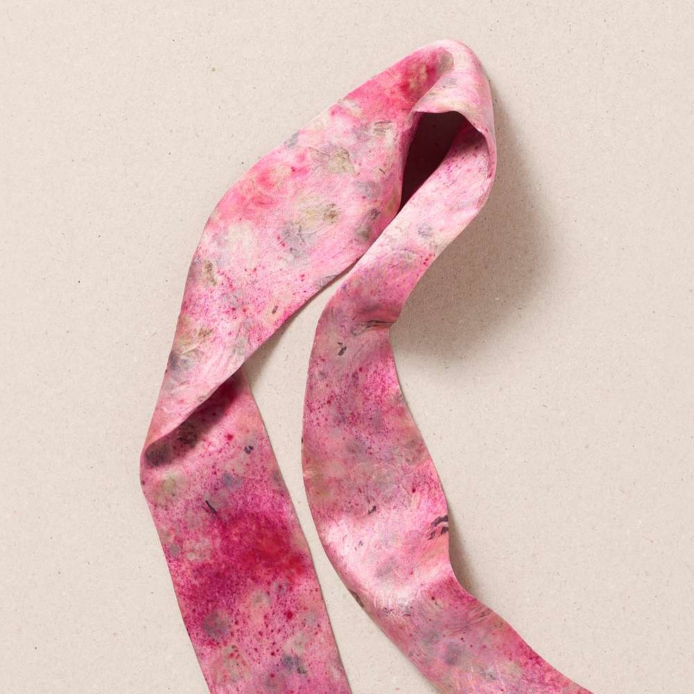 Dyed with natural ingedients to creat "messy" pink hues on silk. Consider it your most adaptable silk accessory. Add a twist to your outfit -neck, hair, headband, wrist or arm, bag strap- endlessly wearable and open to your own interpretation. The "Silkline" series celebrates the essence of Greece, honoring its folk traditions, festivals, arts and cultural heritage that shape the soul of the country. Each 100% silk piece comes with a signed certificate of authenticity listing the natural dyes, techniques and materials used in its making. Uncover what’s within yours.