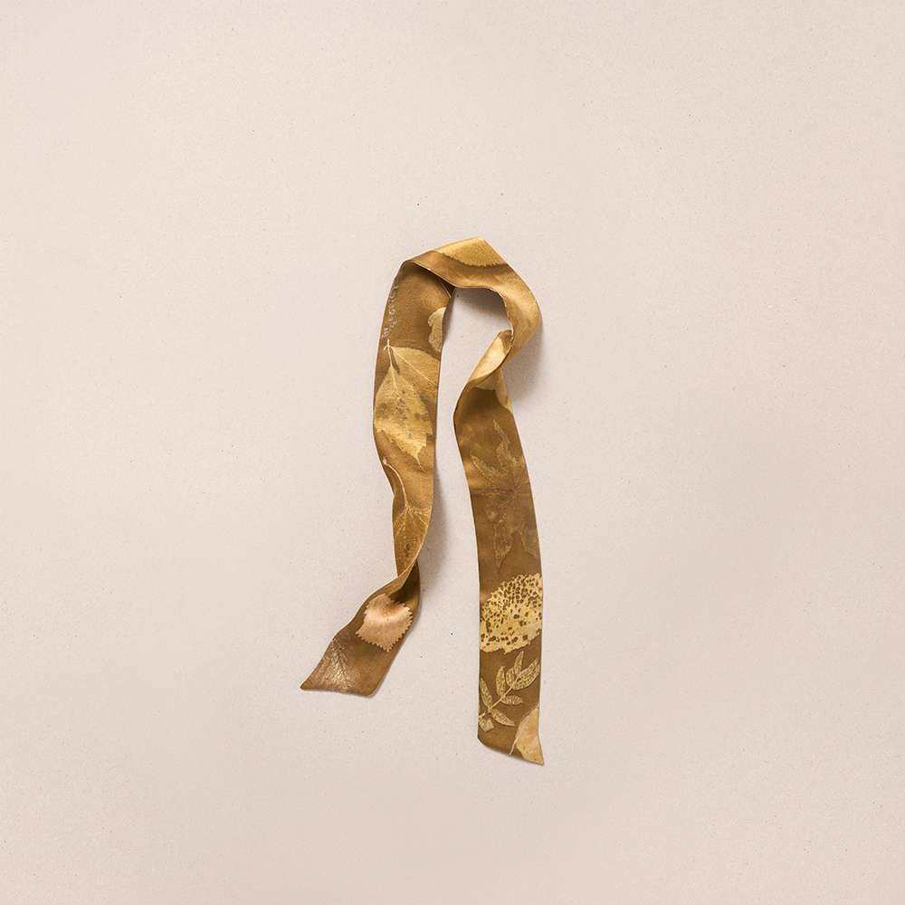 Eco-printed leaves leave varied shades on a bright golden background. Consider it your most adaptable silk accessory. Add a twist to your outfit - neck, hair, headband, wrist or arm, bag strap - endlessly wearable and open to your own interpretation. The "Silkline" series celebrates the essence of Greece, honoring its folk traditions, festivals, arts and cultural heritage that shape the soul of the country. Each 100% silk piece comes with a signed certificate of authenticity listing the natural dyes, techniques and materials used in its making. Uncover what’s within yours.